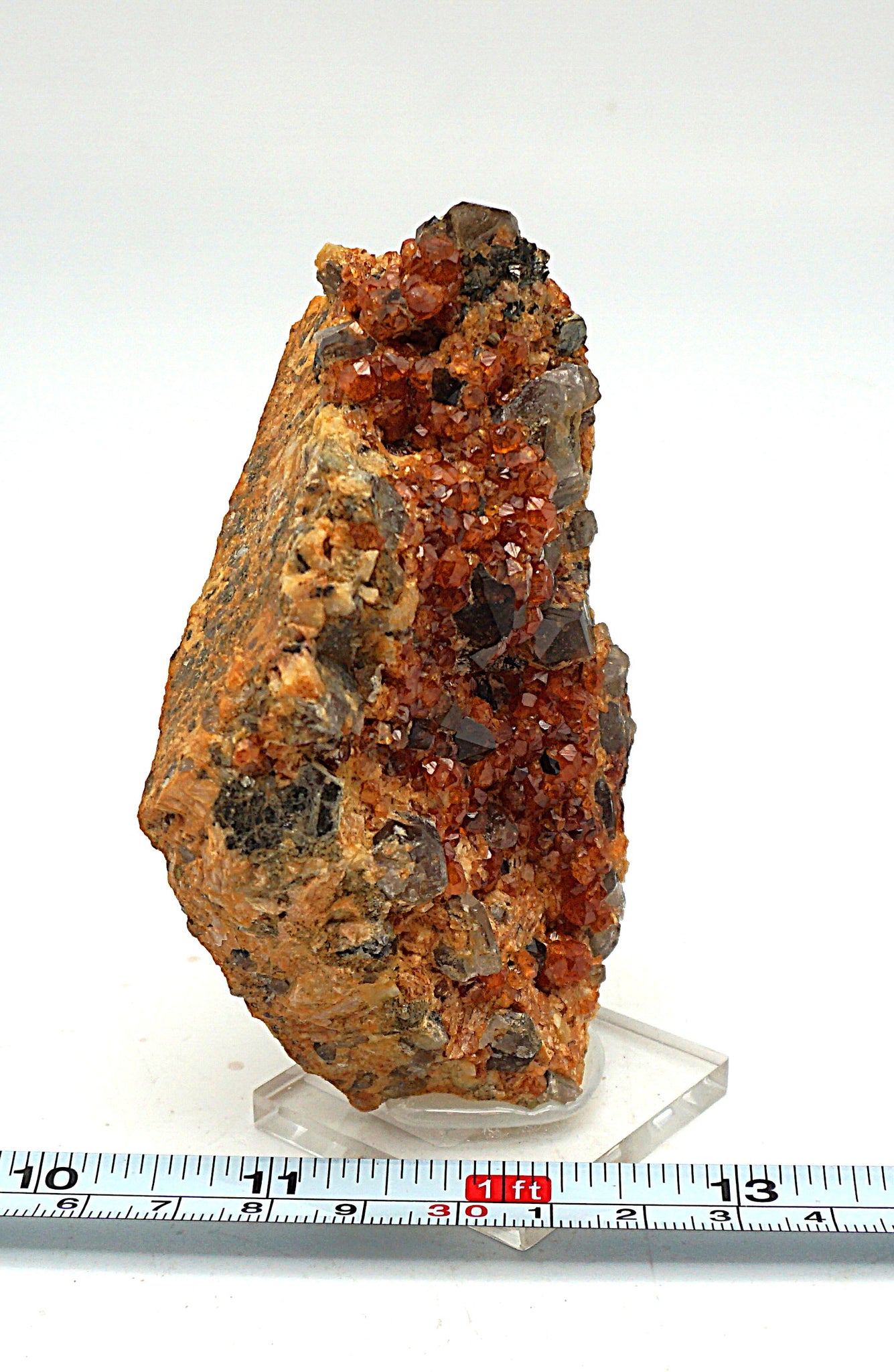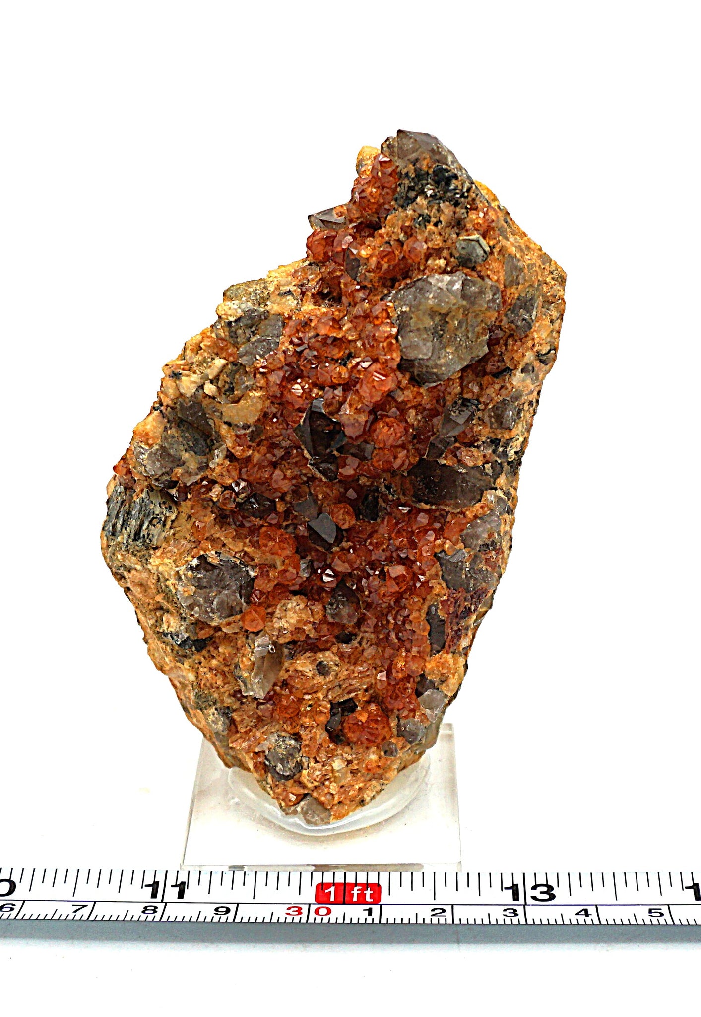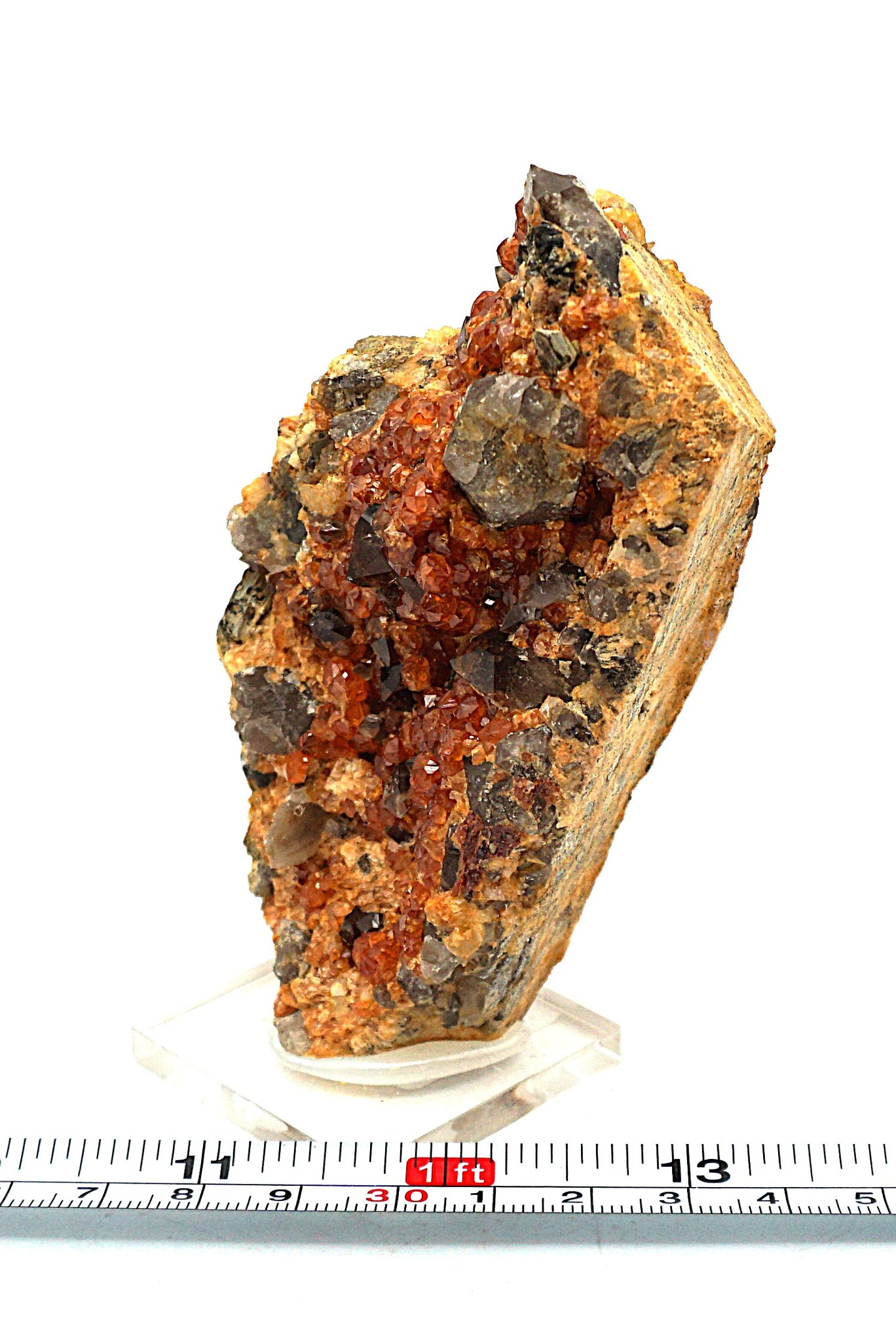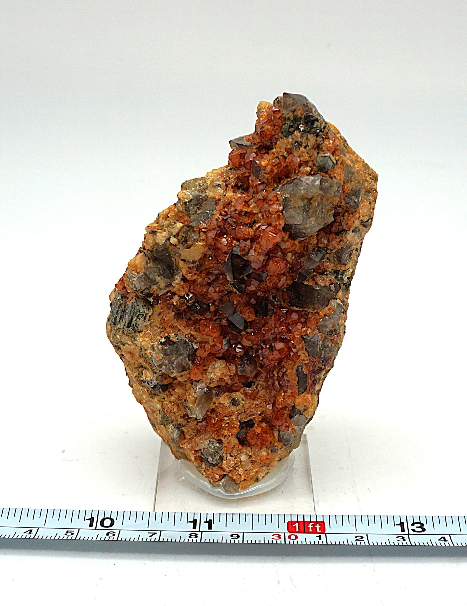 Une petite marche de spessartine (grenat) avec quartz fumé. Voir les photos