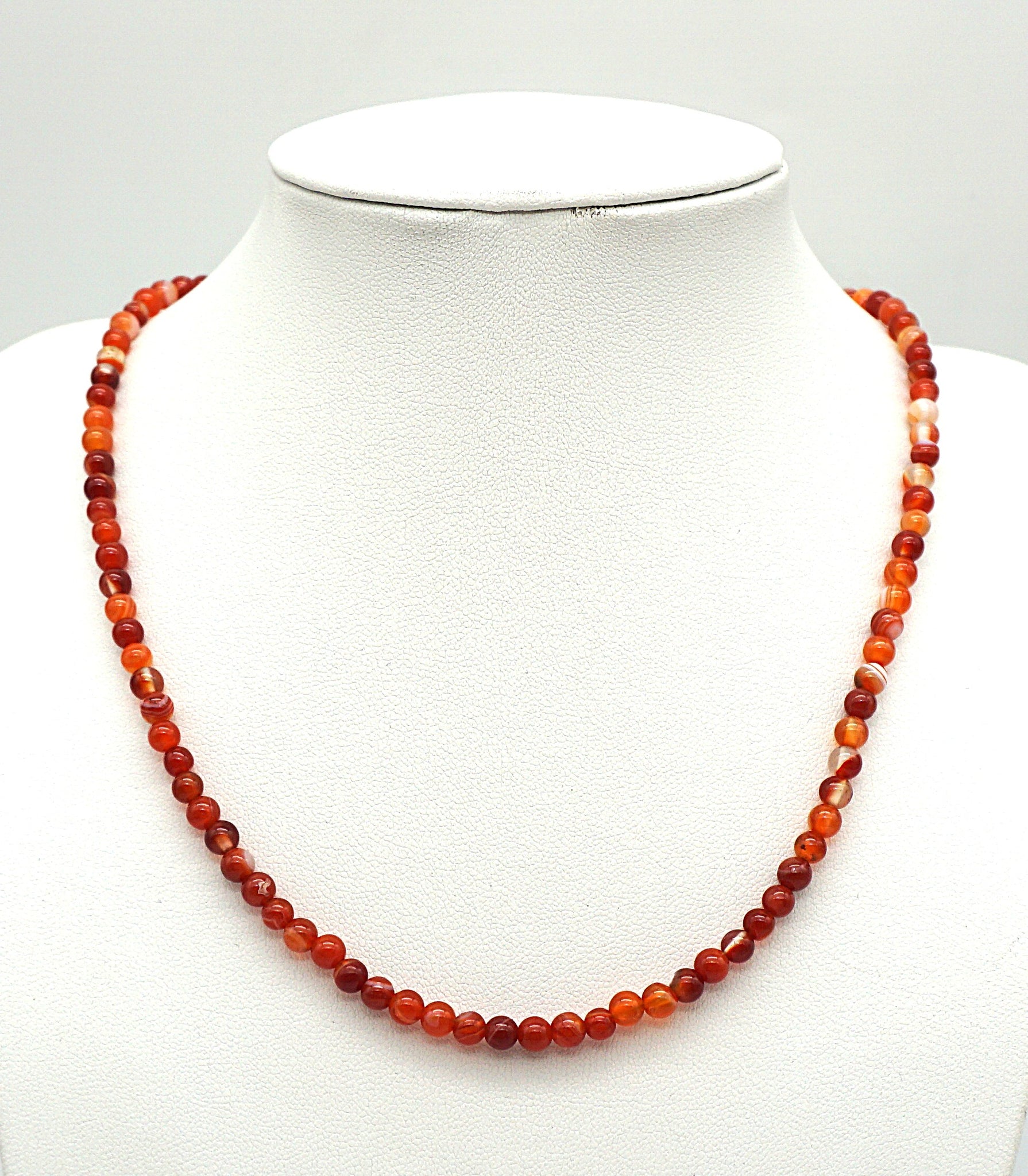 Die Halsketten haben überwiegend Karabiner Verschlüsse aus Metall, versilbert oder vergoldet, ebenso die Zwischenteile. Die meisten Ketten haben eine Ketten Verlängerung von ca. 5 -7 cm. Die Steine können gefärbt, behandelt oder künstlich hergestellt sein.