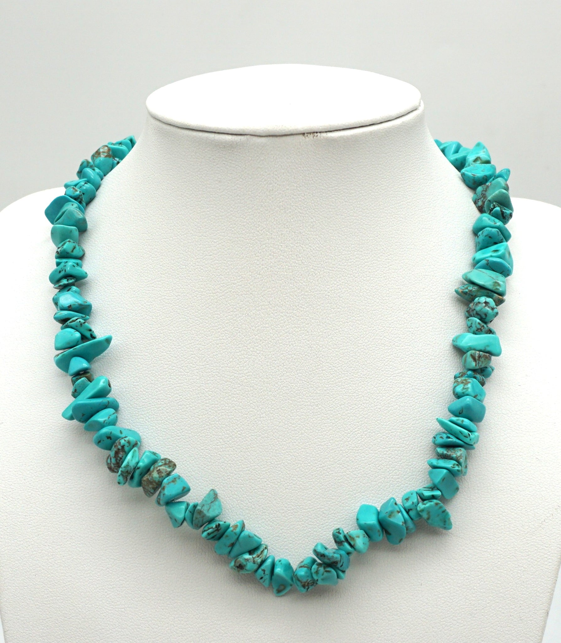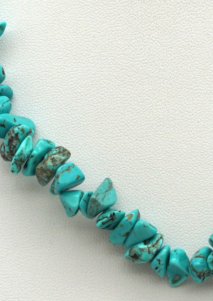 Die Halsketten haben überwiegend Karabiner Verschlüsse aus Metall, versilbert oder vergoldet, ebenso die Zwischenteile. Die meisten Ketten haben eine Ketten Verlängerung von ca. 5 -7 cm. Die Steine können gefärbt, behandelt oder künstlich hergestellt sein.