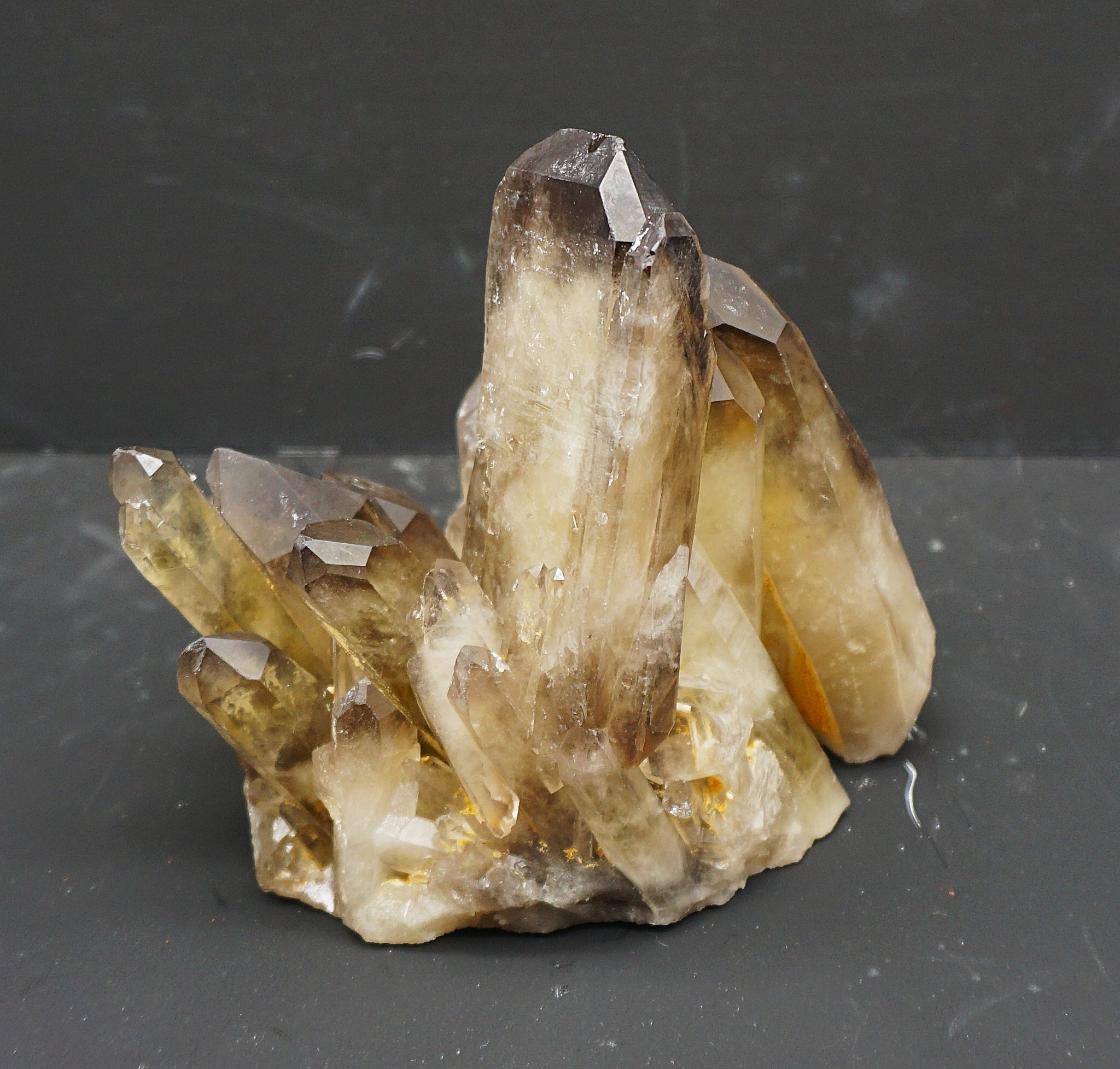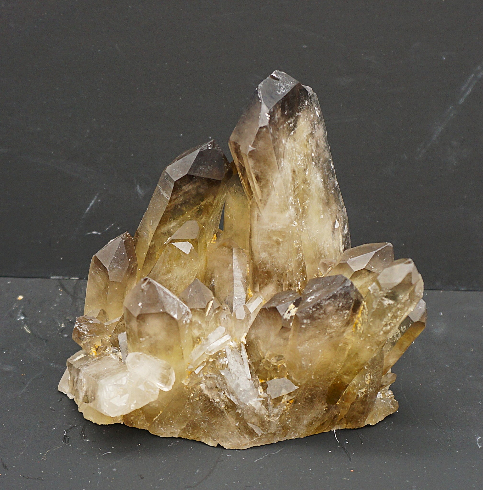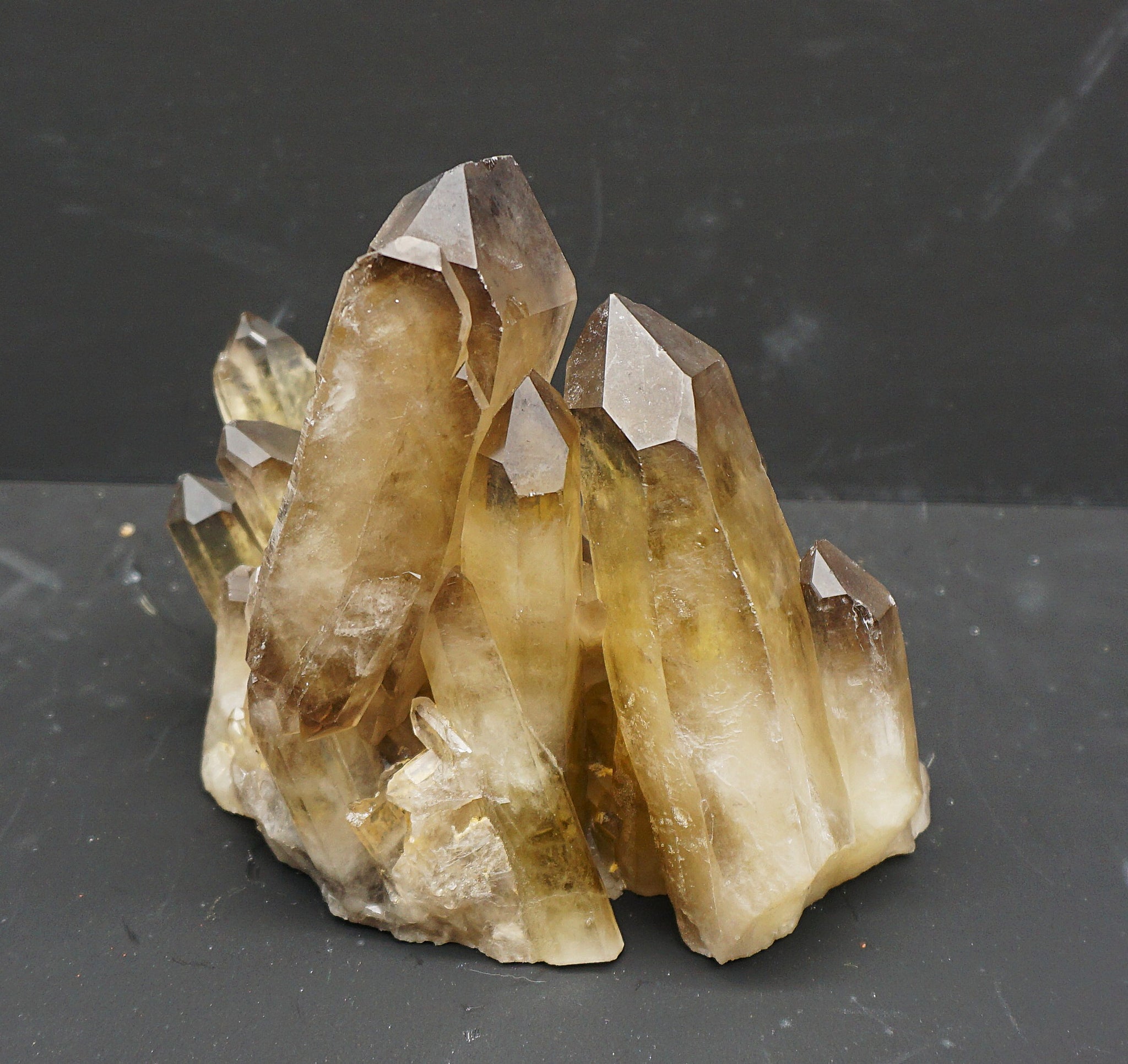 Eine Top Citrin Stufe, mit einem eigenartigen Kristall Aufbau (flacher gewachsener Kristall), siehe Fotos
