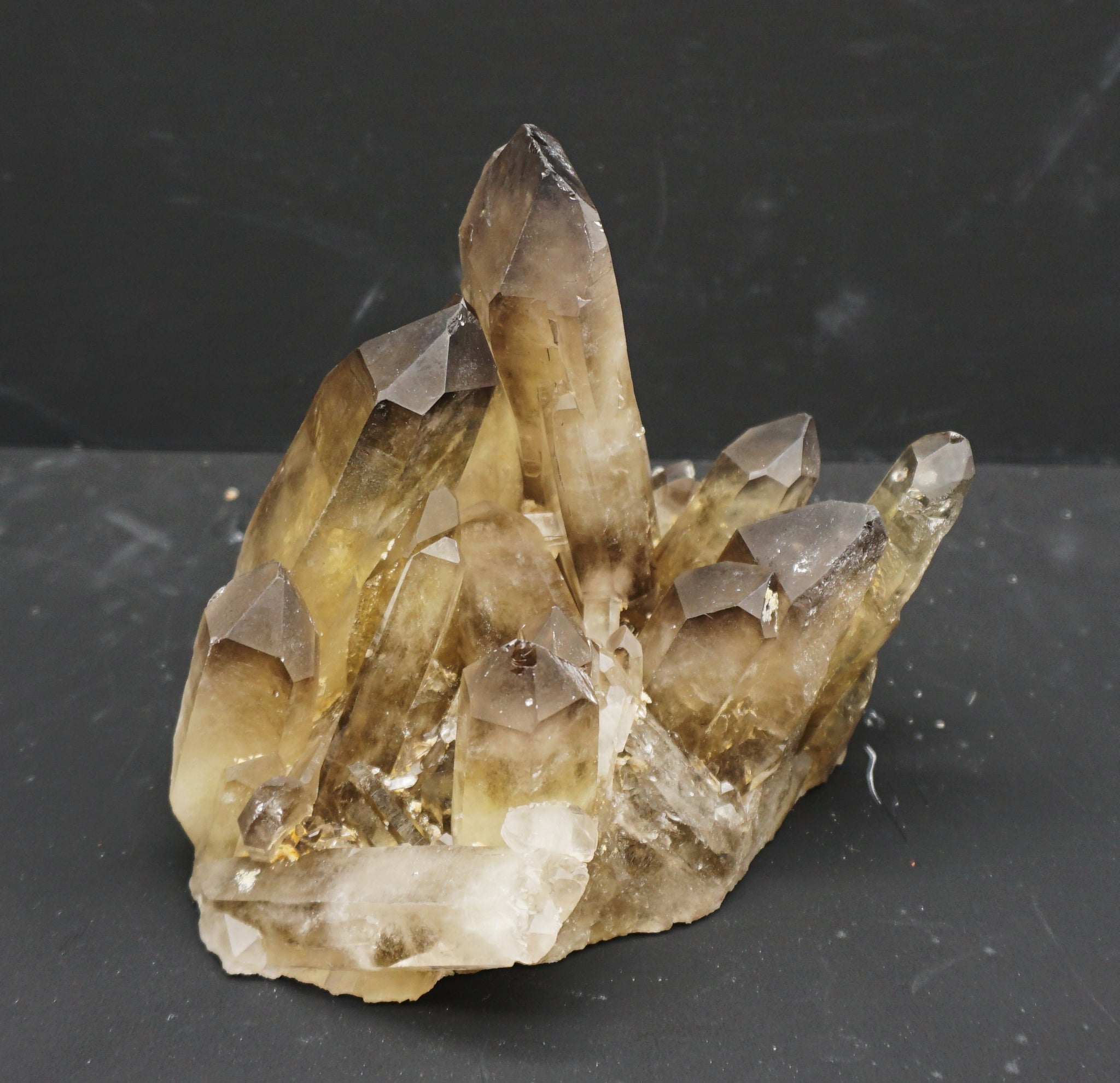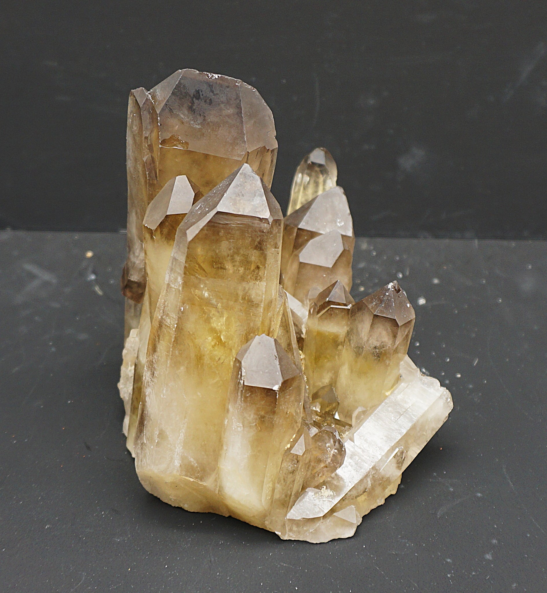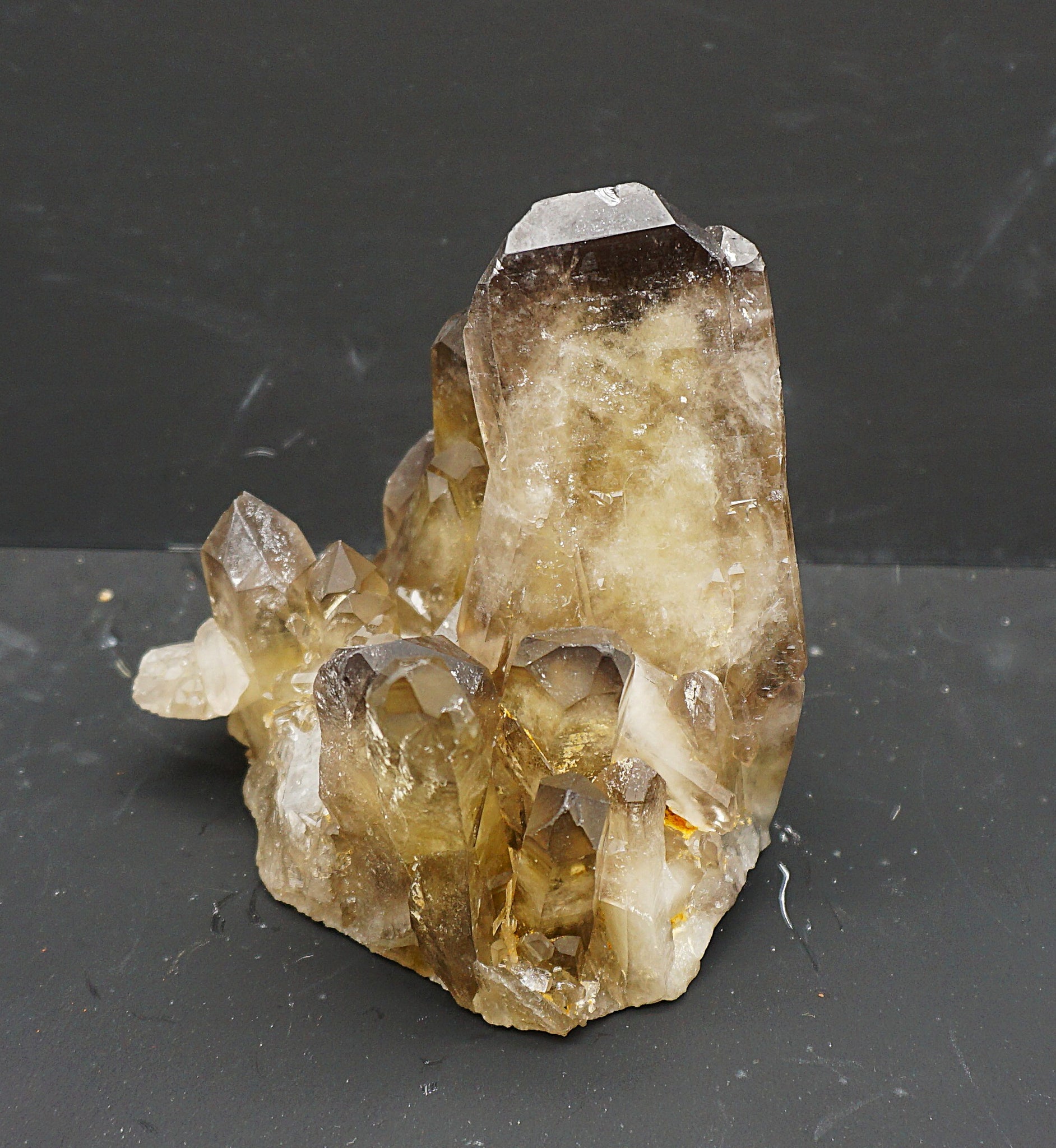 Eine Top Citrin Stufe, mit einem eigenartigen Kristall Aufbau (flacher gewachsener Kristall), siehe Fotos