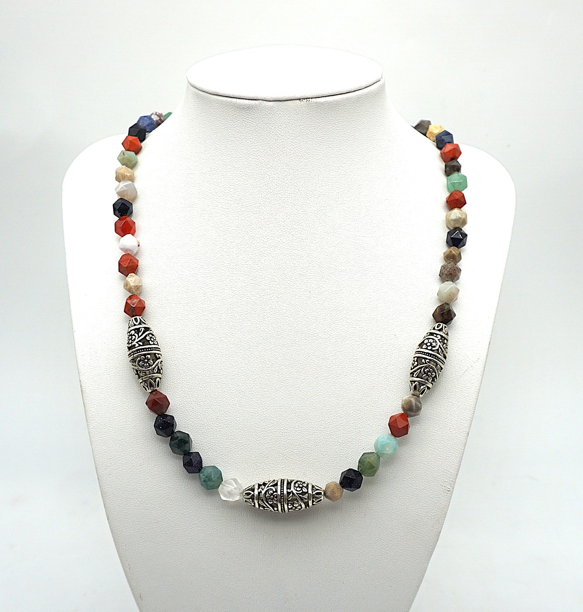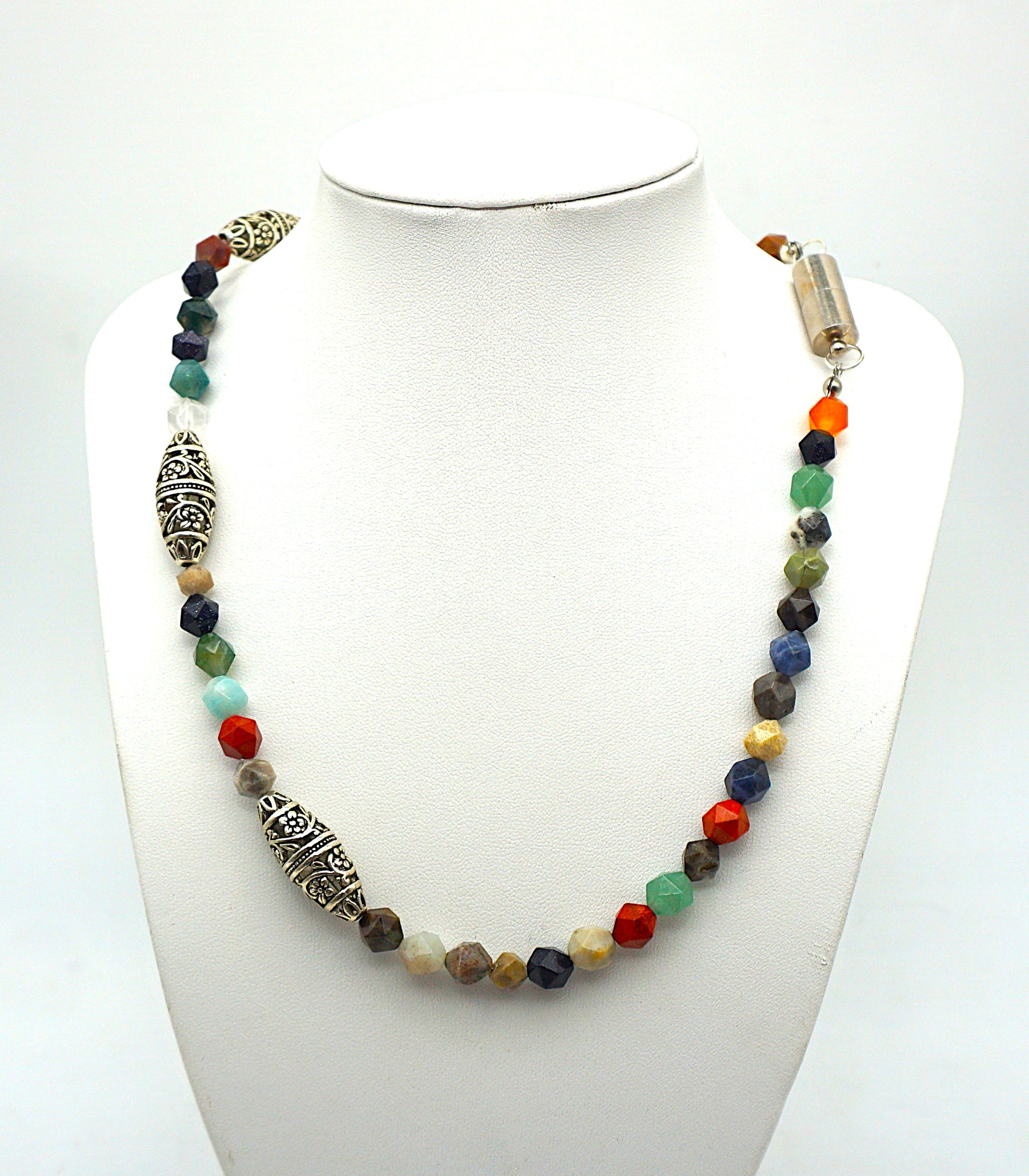 Eine Top Halskette mit facettierten verschiedenen Edelsteinen