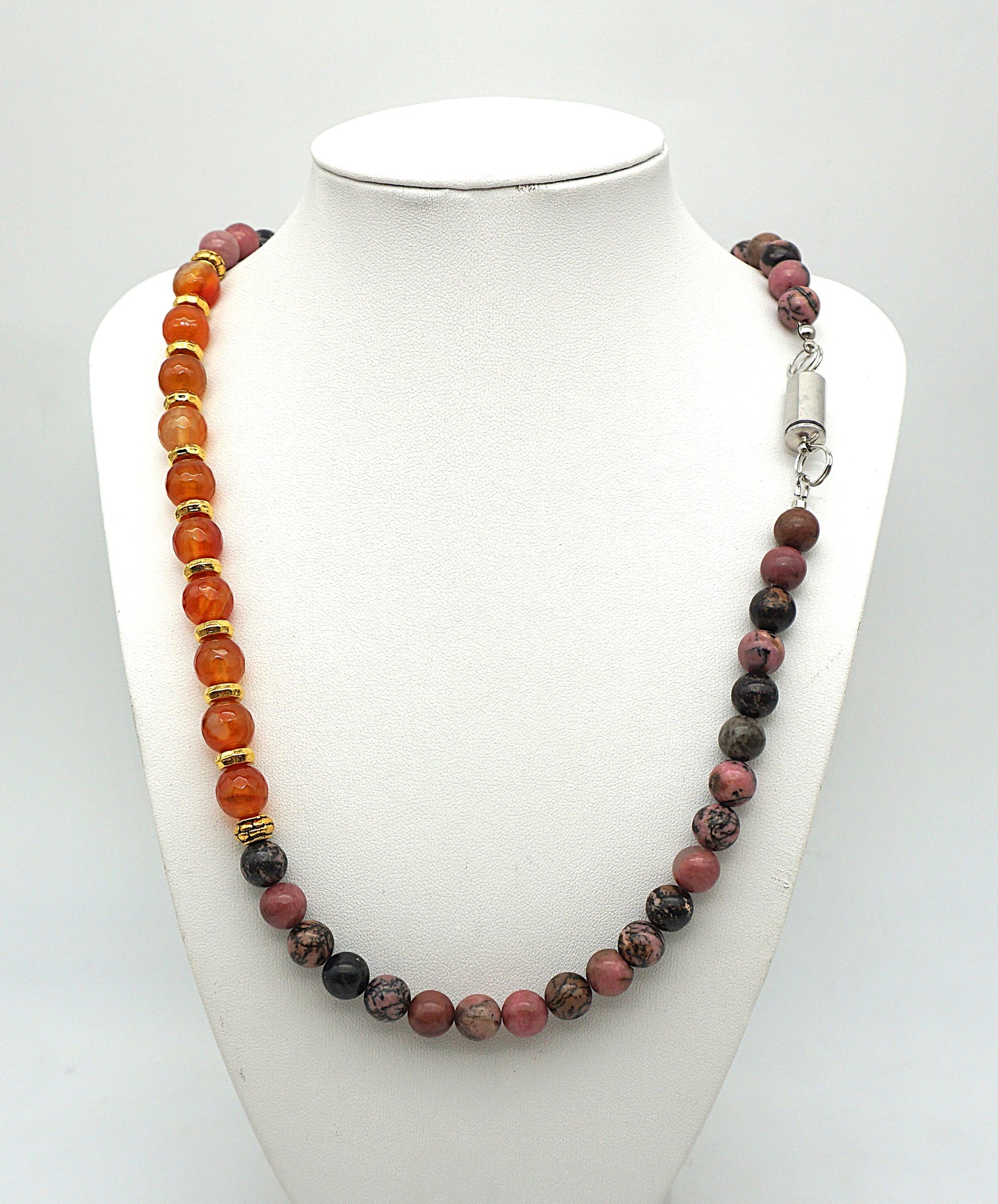 Eine Top Halskette mit Rodonith, Karneol facettiert