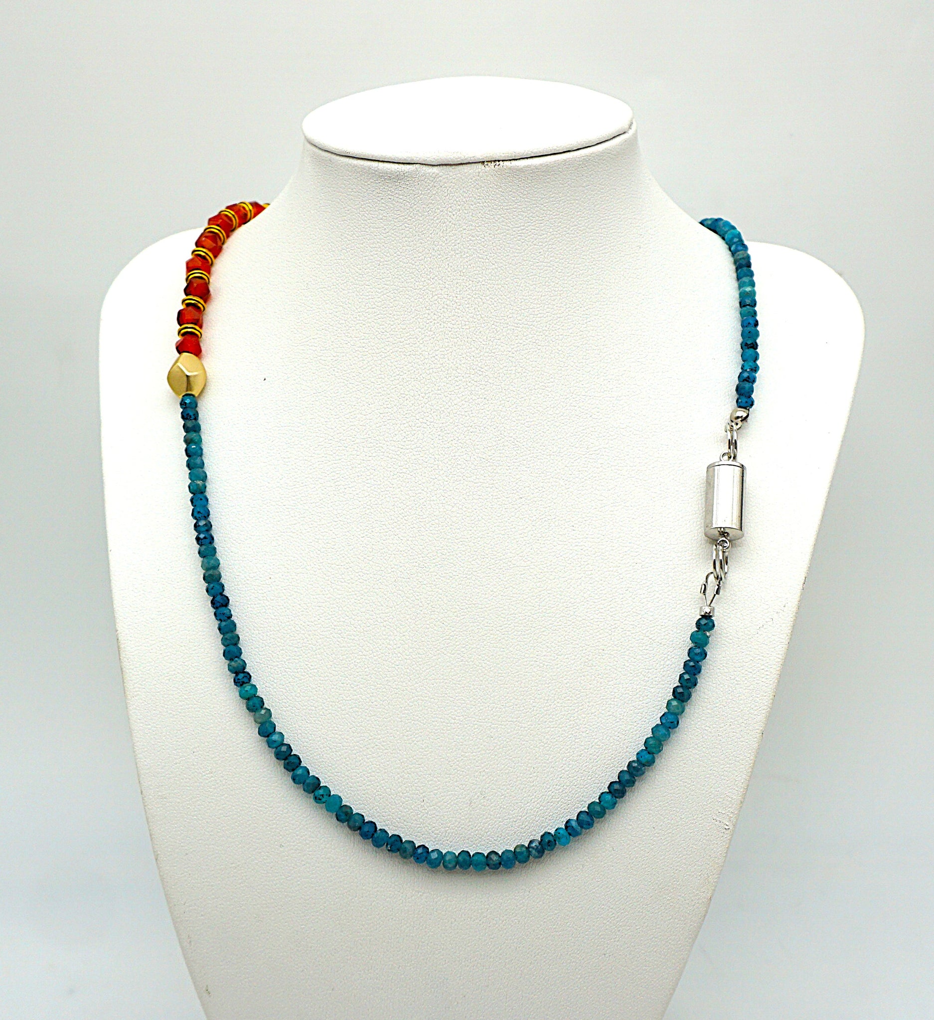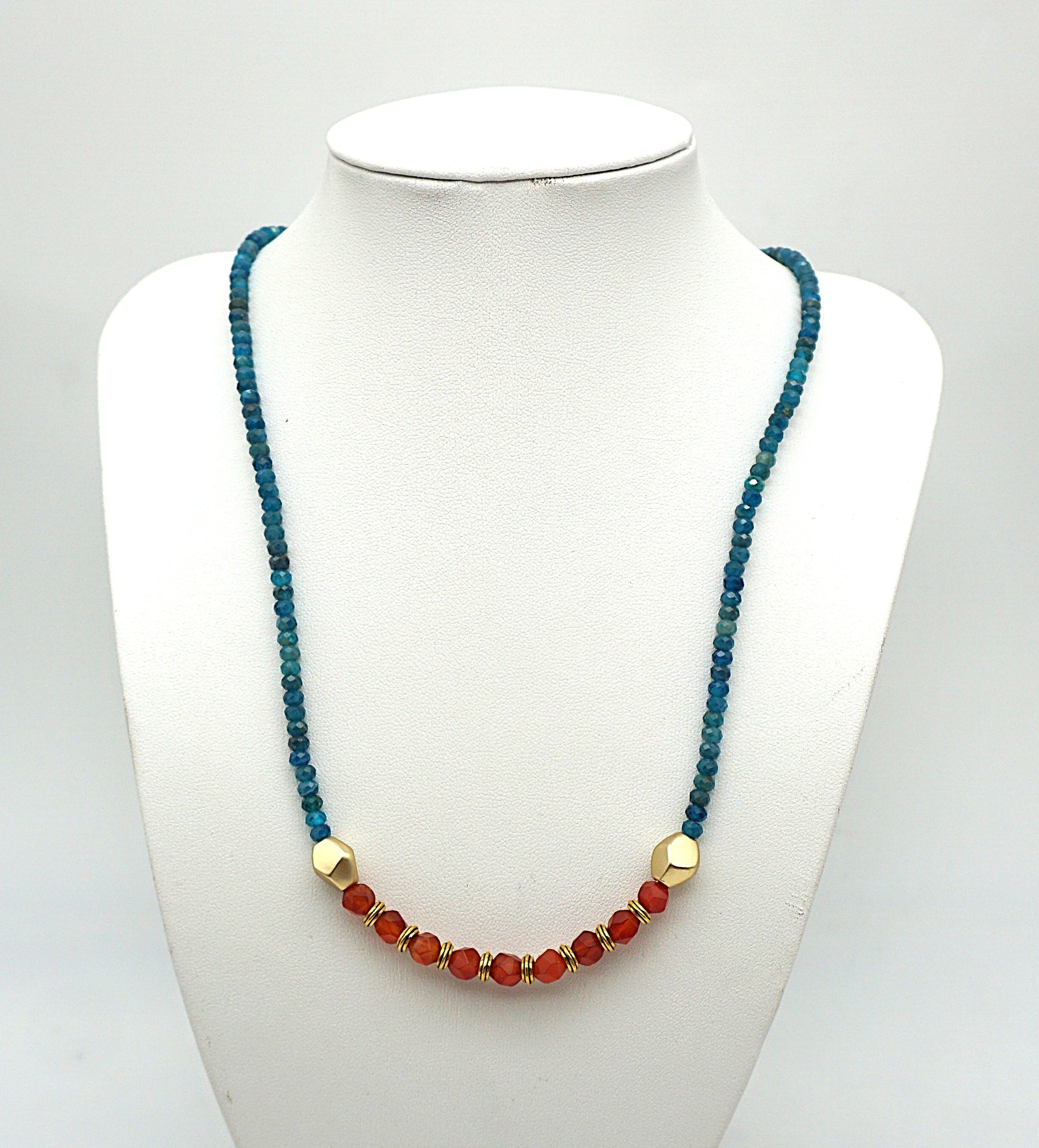 Eine Top Halskette mit blauen Apatit/Karneol facettiert