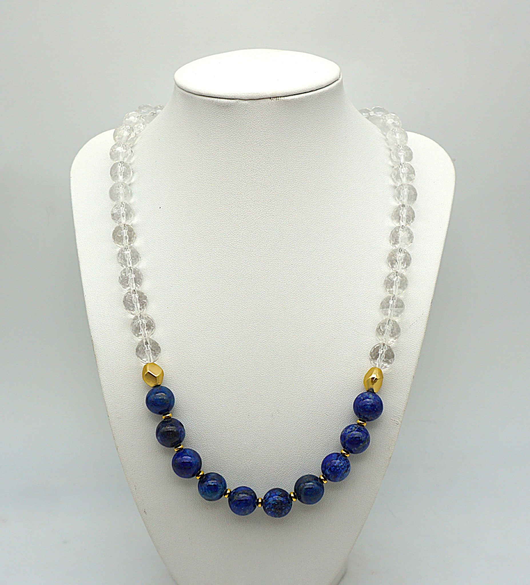 Eine Top Halskette mit Lapislazuli rund, Bergkristall facettiert